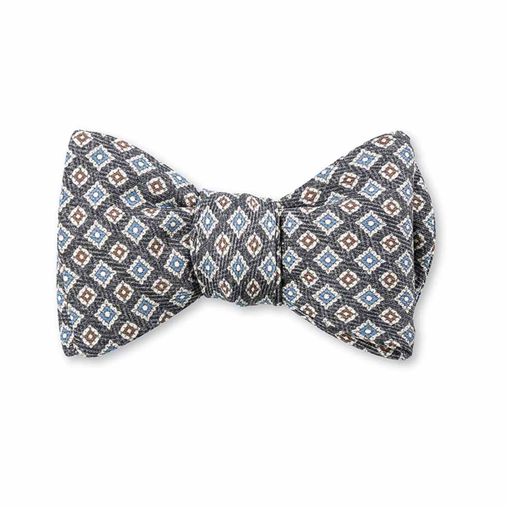 The Brendan Neats Bow Tie is handmade from pure silk. It is a self-tying bow tie with an adjustable length for neck sizes 14″ to 18″. Includes easy-to-follow tying instructions. Dry clean. Made in the USA.