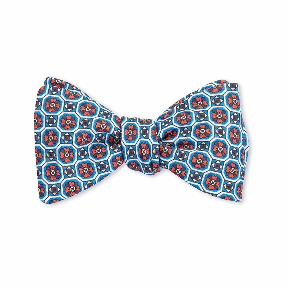 The Calhoun Bow Tie is handmade from a 100% cotton. It is a self-tying bow tie with an adjustable length for neck sizes 14″ to 18″. Includes easy-to-follow tying instructions. Dry clean. Made in the USA.