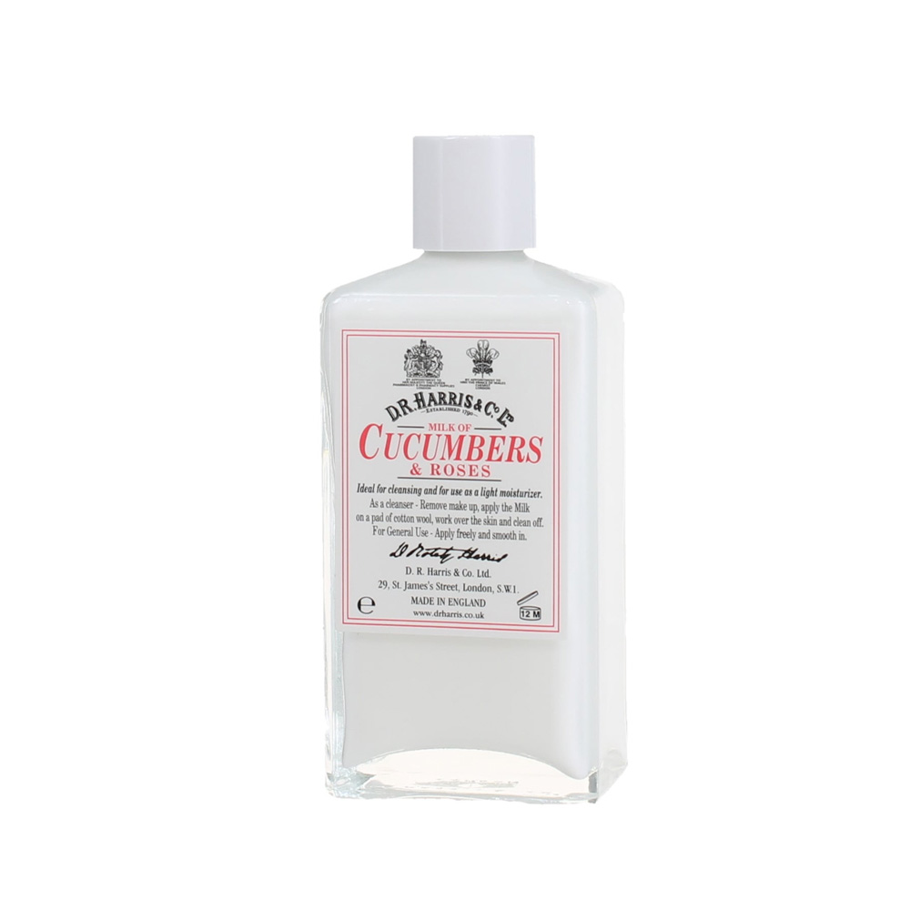 The Milk of Cumcumber & Roses by D.R.Harris & Co. is a A light, milky white lotion that can be used as a deep cleanser, to remove light make-up or as a moisturizer. Best for light to oily skin. For ladies, the lotion is an excellent make-up base for all except very dry skin types, and will leave the face feeling fresh, clean and soft. 100ml. Made in England.